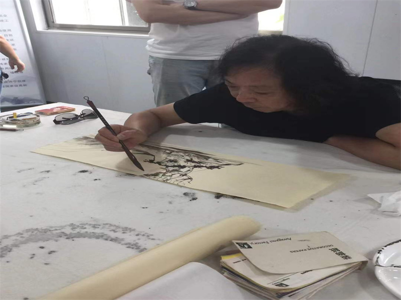 知名畫(huà)家汪家芳老師一行來(lái)公司指導(dǎo)并試筆